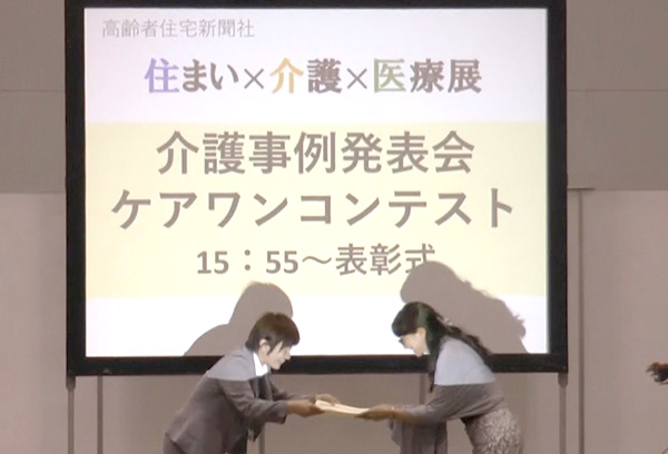 2018年7月10・11日の2日間東京ビッグサイトにて開催されました、住まい×介護×医療展2018 in 東京(※1)内、介護事例発表会「ケアワンコンテスト」(※2)において、弊社2施設が参加、GENKI NEXT京都吉祥院「自立への架け橋~車イス生活からの自立~」が「高齢者住宅新聞賞」を受賞いたしました。